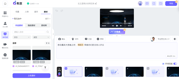有言可以一站式AIGC生成3D視頻,將高新企業(yè)復(fù)雜的技術(shù)細(xì)節(jié)和優(yōu)勢(shì)轉(zhuǎn)化為生動(dòng)、直觀的場(chǎng)景化體驗(yàn)。國(guó)能日新將能源運(yùn)營(yíng)與AI、大數(shù)據(jù)、云計(jì)算等前沿科技深度融合,打造極具科技感的展臺(tái)及3D科技感視頻呈現(xiàn),讓創(chuàng)新科技有了更為具象化的呈現(xiàn)。以視頻化形態(tài),將企業(yè)的科技實(shí)力和產(chǎn)品優(yōu)勢(shì)傳遞給更廣泛的受眾。
