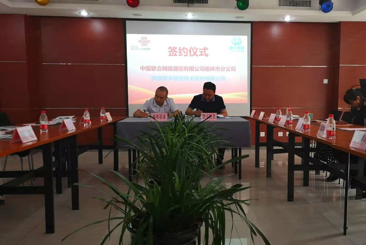 中國聯(lián)通榆林分公司總經理陳鍇與思宇信息總經理李曉剛代表雙方簽訂戰(zhàn)略合作協(xié)議。